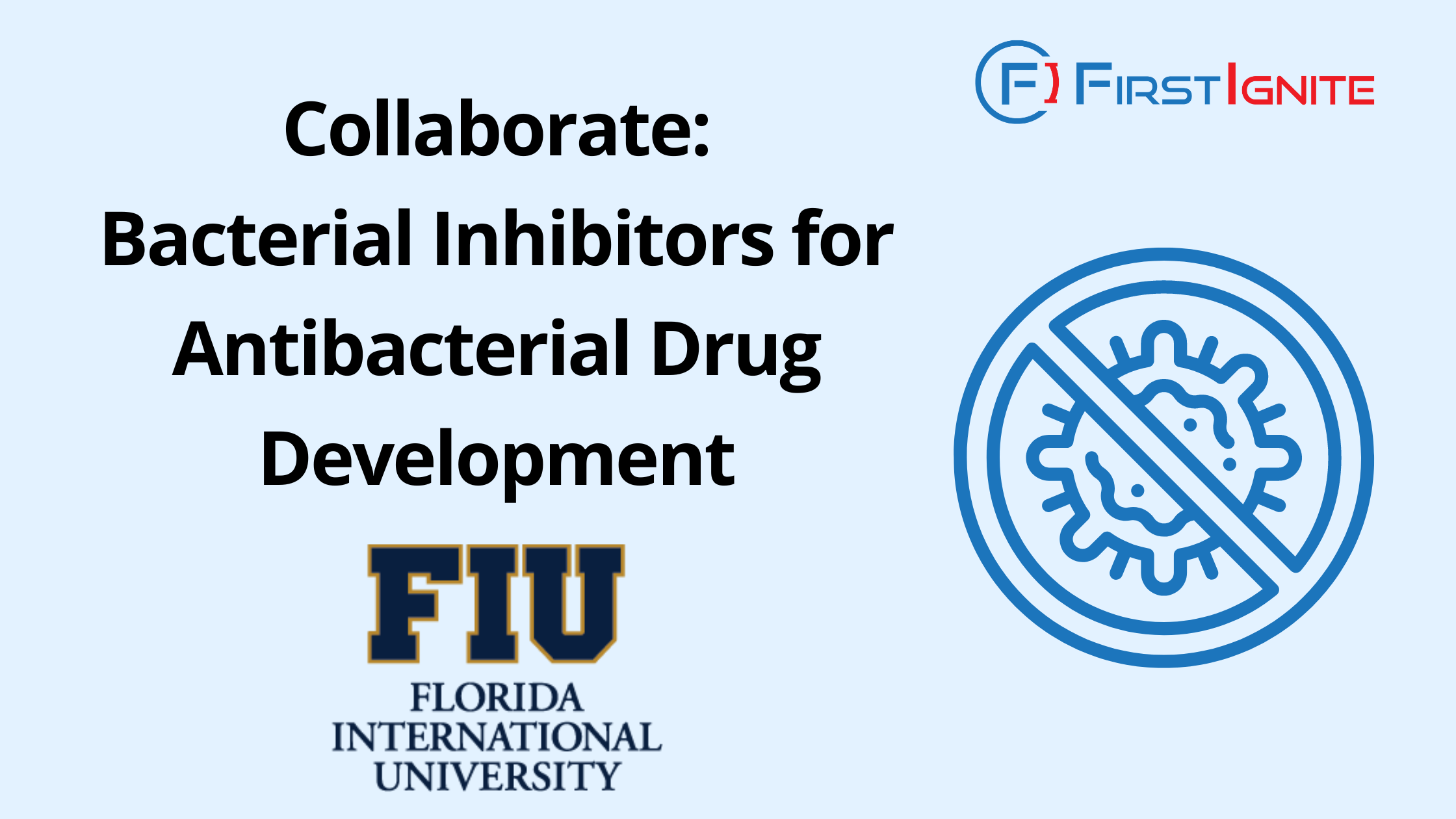 FirstIgnite is supporting the commercialization of Florida International University’s new bacterial inhibitors for antibacterial drug development technology, involving the synthesis of antibacterial compounds, which inhibits bacterial topoisomerase I, an enzyme essential for the viability of many pathogens. These compounds exhibit bactericidal properties, holding potential for infection treatment and antibacterial drug development against many pathogens.