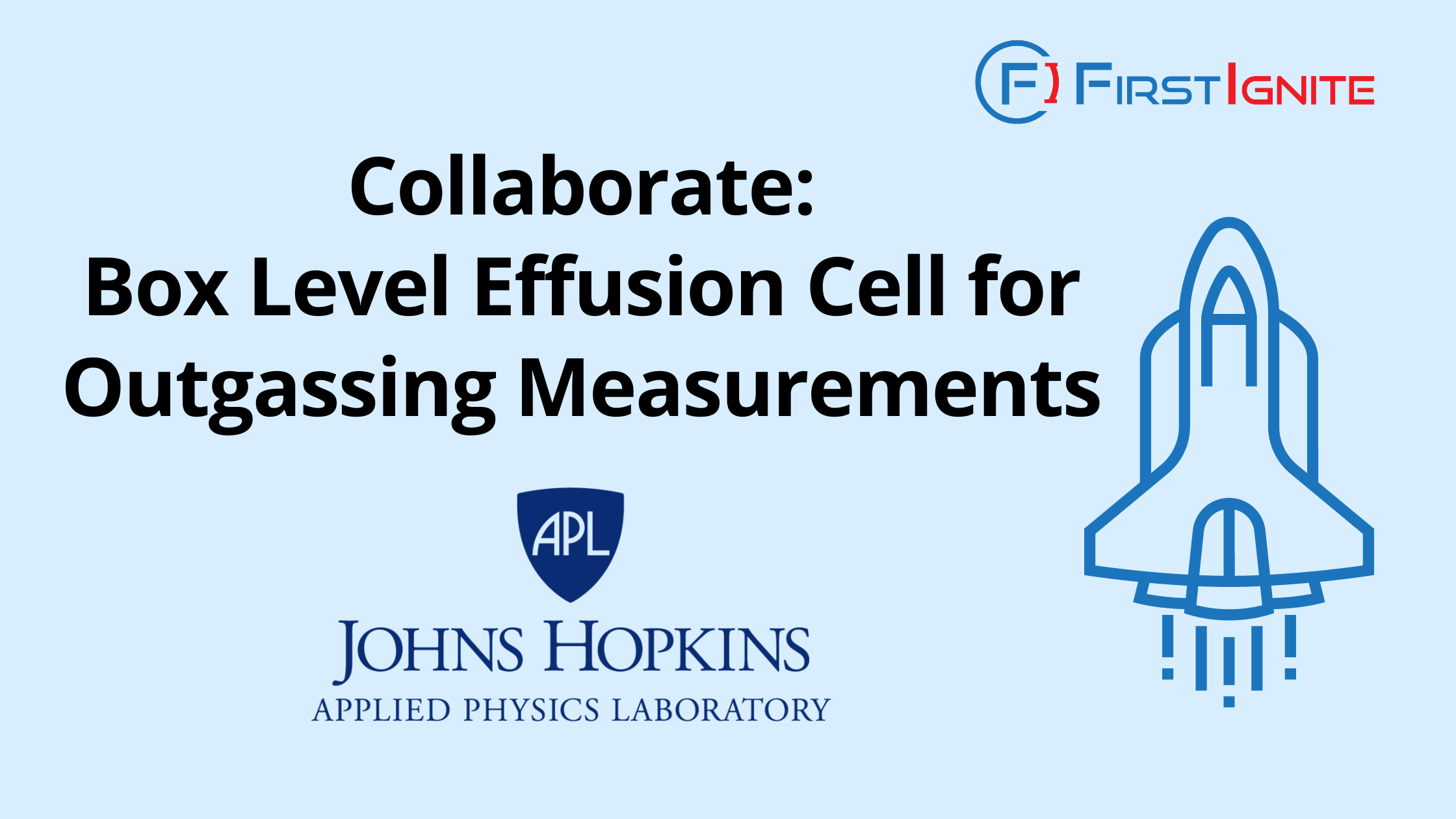 FirstIgnite is supporting the commercialization of Johns Hopkins University Applied Physics Laboratory’s Box Level Effusion Cell for Outgassing Measurements technology. This cell offers precise thermal control (+/- 2°C) for large masses (~10 kg) through a unique “trapdoor” design that optimizes vacuum conductance during the bakeout phase for the hardware and isolates hardware during outgassing measurements.