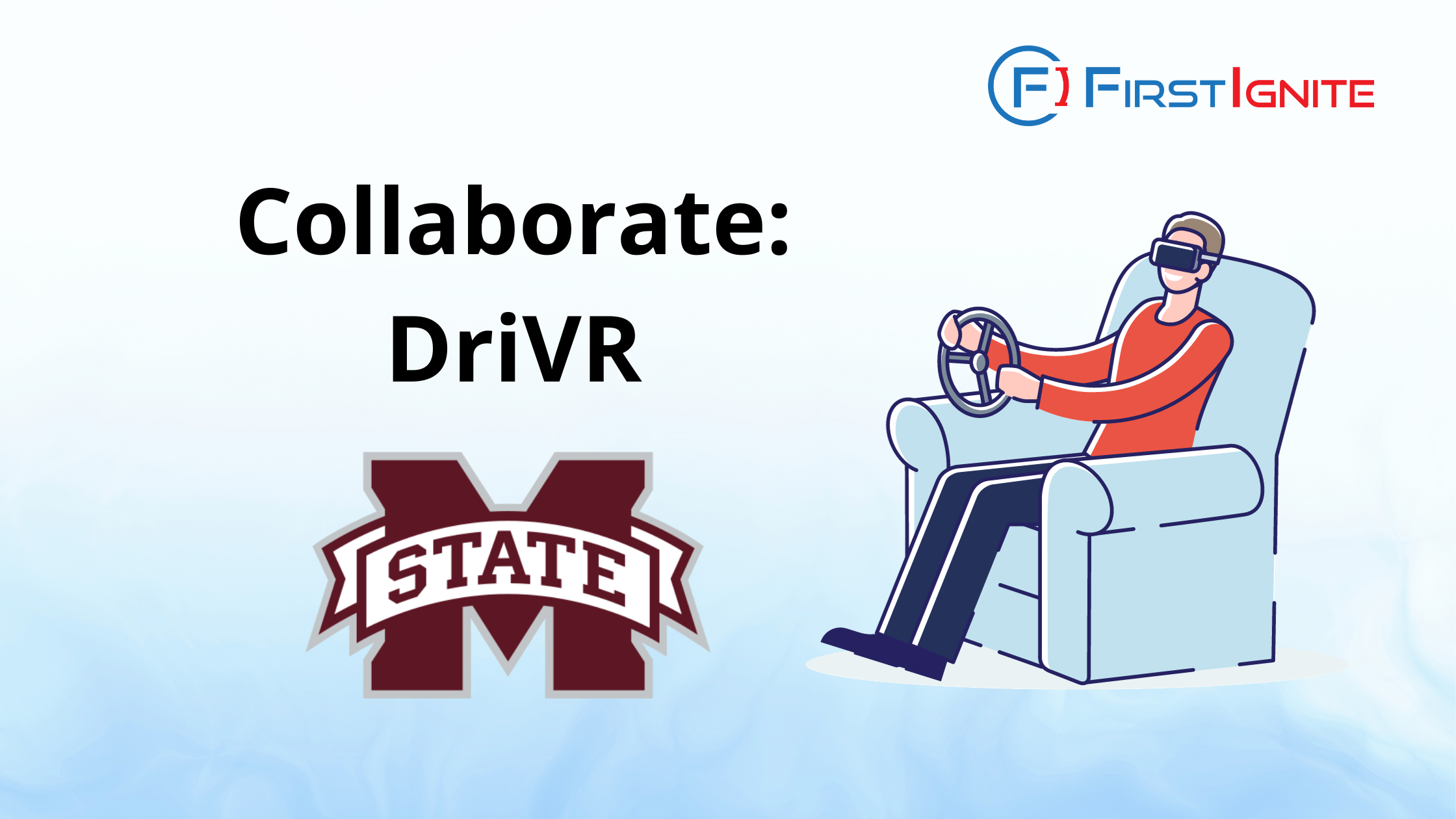 FirstIgnite is supporting the commercialization of Mississippi State University’s DriVR technology, which is a virtual reality (VR) software application that prepares individuals with disabilities for real-world driving, with personalized scenarios to boost confidence, decrease anxiety, and enhance independence and employment prospects.
