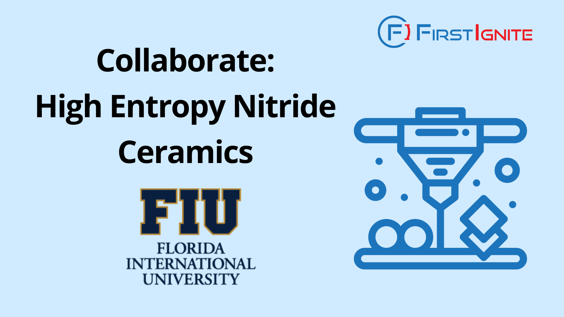 FirstIgnite is supporting the commercialization of Florida International University’s high entropy nitride ceramics technology. This technology manufactures high entropy nitride ceramics through the use of the reaction flash sintering method, resulting in enhanced hardness and improved fracture toughness.