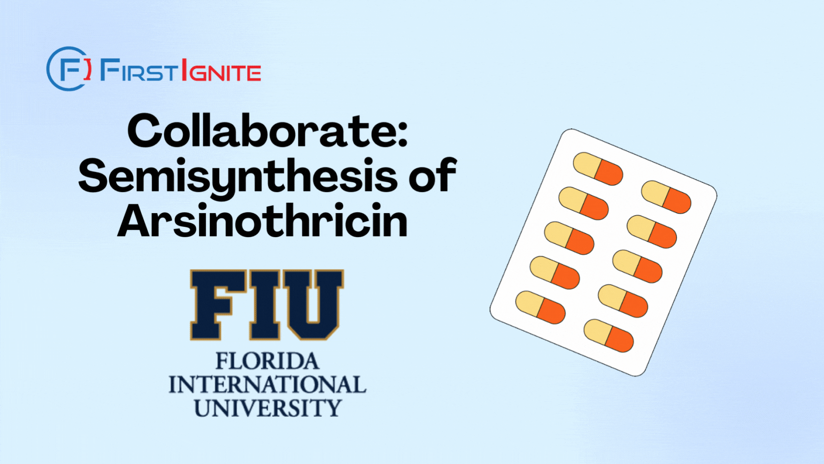 FirstIgnite is supporting the commercialization of Florida International University’s new technology for the semisynthesis of arsinothricin. The benefits of this technology include that it provides a simple synthesis method of AST-OH and its derivatives, can be scaled up to produce AST and its derivatives in amounts sufficient for further drug development, and it eliminates the necessity of conversion of pentavalent arsenic acids with toxic SO2 gas, and challenging displacement of hydroxyl group with chloride.